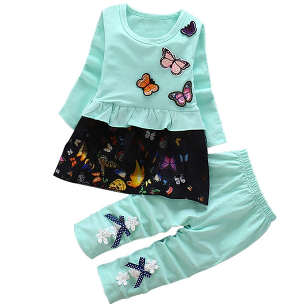 Butterfly Design Long Sleeve Shirt + Pants Set (3months to 3yrs old)