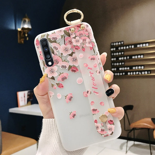 Fashionable Emboss Flower Wristband Phone Case ( for Samsung S8, S8+, S9, S9+, S10, S10+, S10E, Note8, Note9, Note10, Note10+)