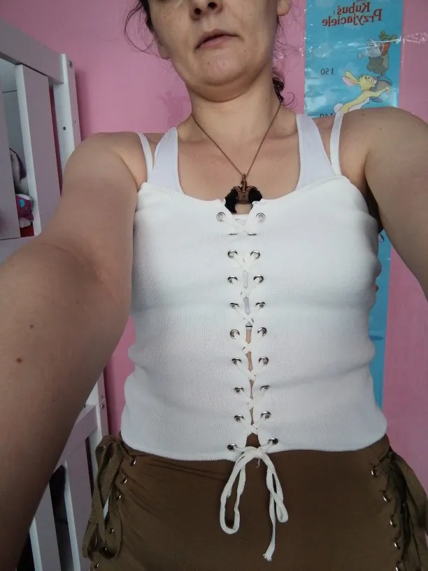This is a great top, came 20 days to about Nizhny Novgorod. A little stuck out, I cut them off. Size M on the chest 89 cm and waist 58 somewhere went perfectly, looks quite decent. No unpleasant smell, the goods sent a few hours after payment